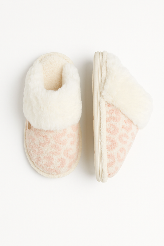Leopard Faux Fur Cuff Slippers